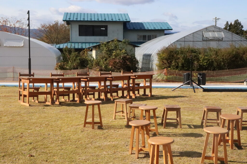 旧長岡小学校の校舎内にて、マルシェや里山遊びコーナー、伝統芸能のステージなどが開催されました。