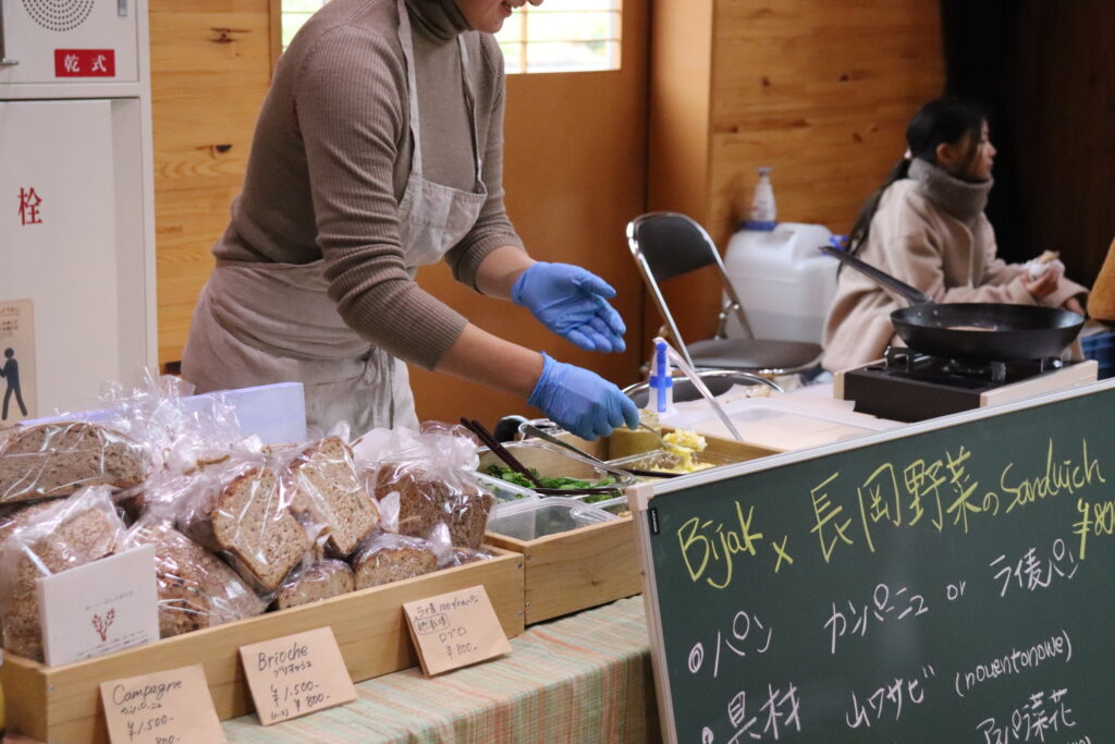 地元の方々のご協力のもとでの芋の子汁とおにぎりのお振る舞い、地元の生産者さんとのトークセッション、