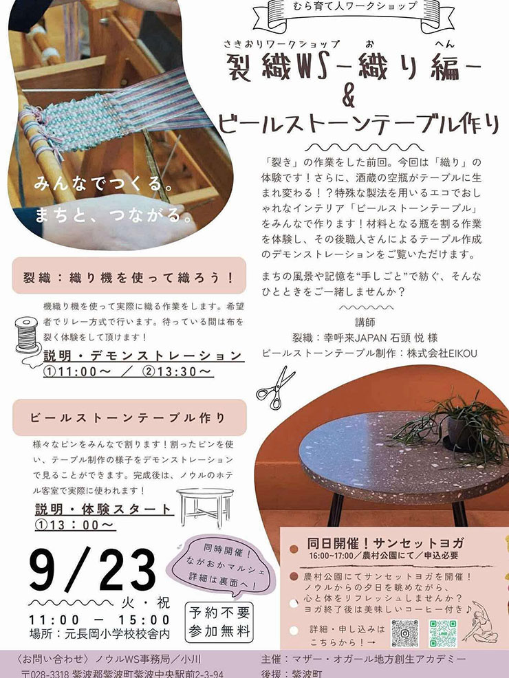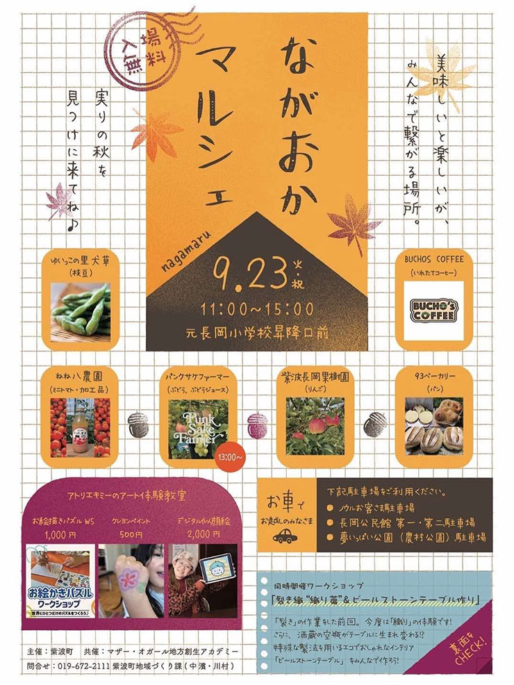 ノウルプロジェクトでは、2025年9月23日(火・祝)に「ながおかマルシェ」と「むら育て人ワークショップ」を開催いたします。